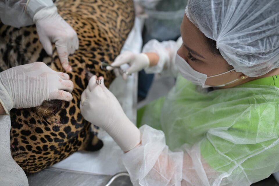 Onça-pintada é resgatada após ser alvejada com mais de 30 chumbinhos no Rio Negro
