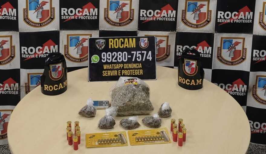 Durante patrulhamento tático realizado na noite de segunda (19/01), por volta das 23h30, policiais da ROCAM apreenderam munições de diferentes calibres e substâncias entorpecentes na rua Ricardo Chamma, no bairro Vila Marinho, zona Sul de Manaus.