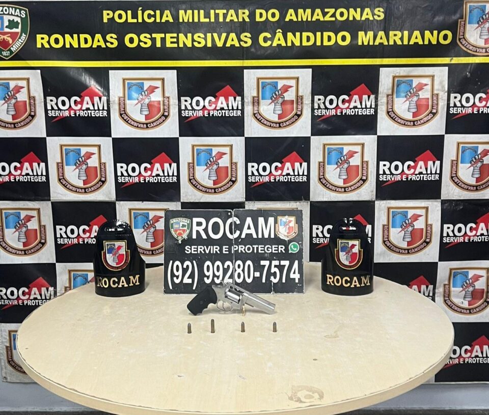 Durante uma ação na noite desta segunda-feira (27), policiais da Rondas Ostensivas Cândido Mariano (Rocam) apreenderam um revólver calibre .38 no bairro Tancredo Neves, zona leste de Manaus. A equipe foi acionada por meio do Disque-Denúncia Rocam, que informou sobre um homem armado em uma laje na Rua Inhambé Vermelho. Ao chegar ao local, os policiais visualizaram o suspeito com uma arma em punho, mas ele fugiu ao perceber a aproximação da viatura, não sendo localizado.